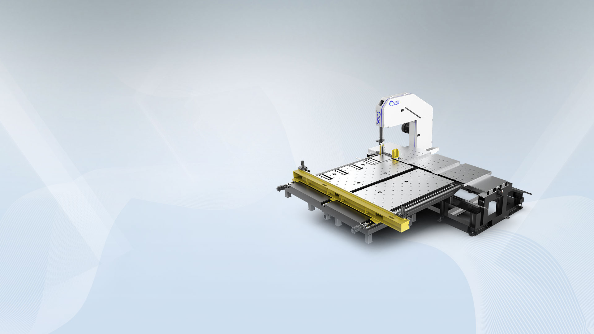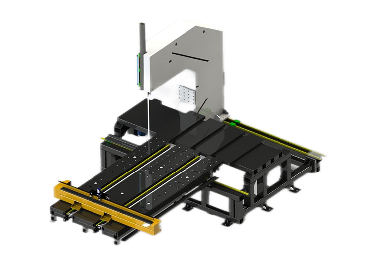 采用双气压,整体压料罩形式动作,气压由上往下压料,提高锯切安全性,有利于集中处理锯屑